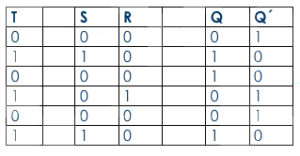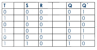 A diferencia del flip flop RS, en el caso de activarse ambas entradas a la vez, la salida adquiere el estado contrario al que tenía.